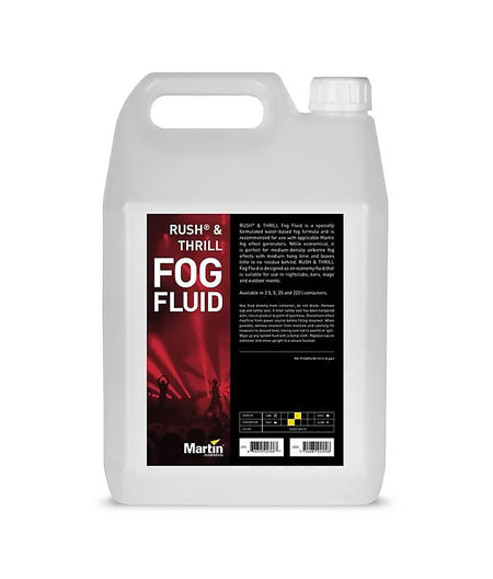 RUSH® & THRILL Fog Fluid is a specially formulated water-based fog formula and is recommended for use with applicable Martin fog effect generators. While economical, it is perfect for medium-density airborne fog effects with medium hang time and leaves little to no residue behind. RUSH & THRILL Fog Fluid is designed as an economy fluid that is suitable for use in nightclubs, bars, stage and outdoor events.